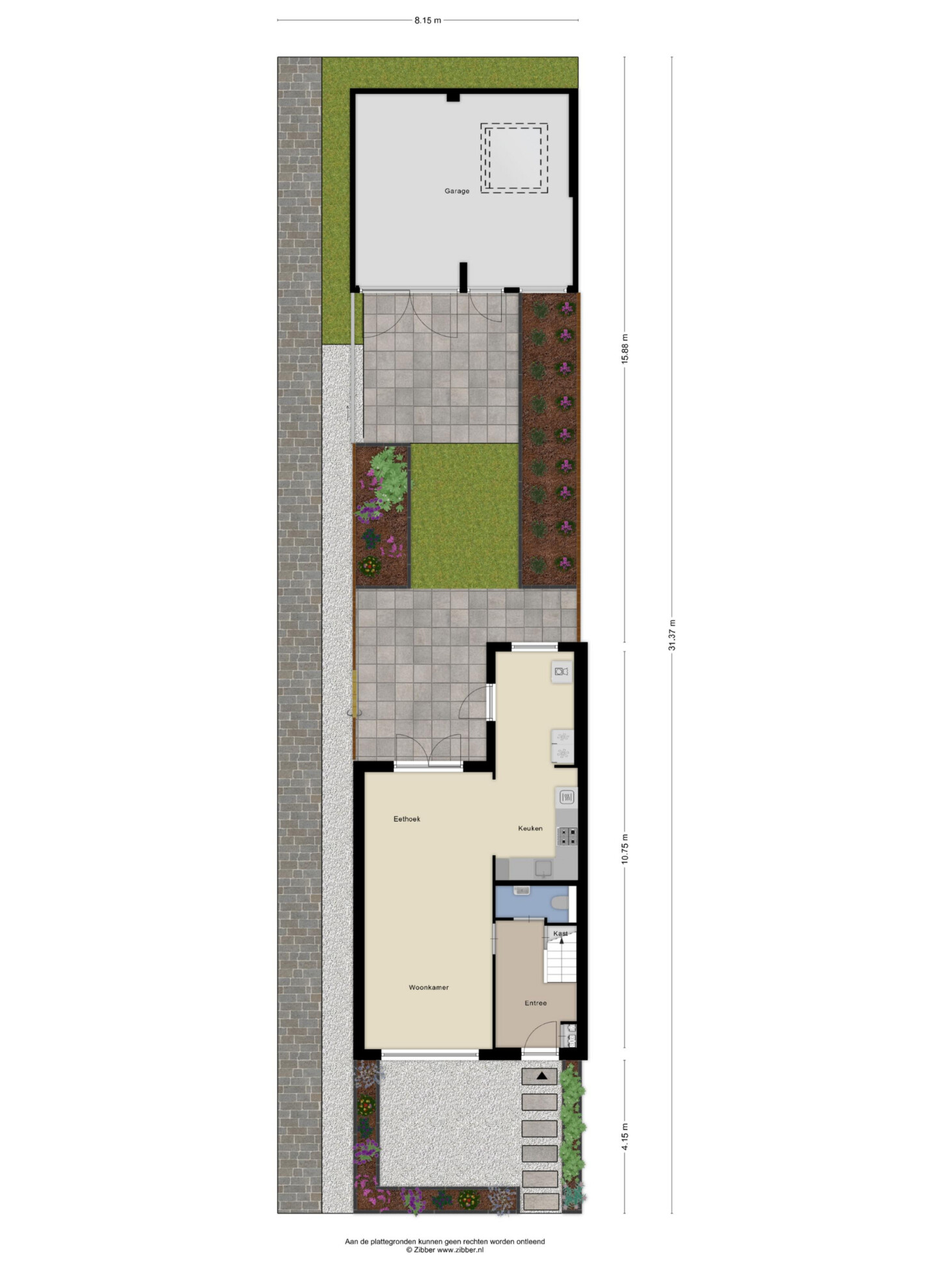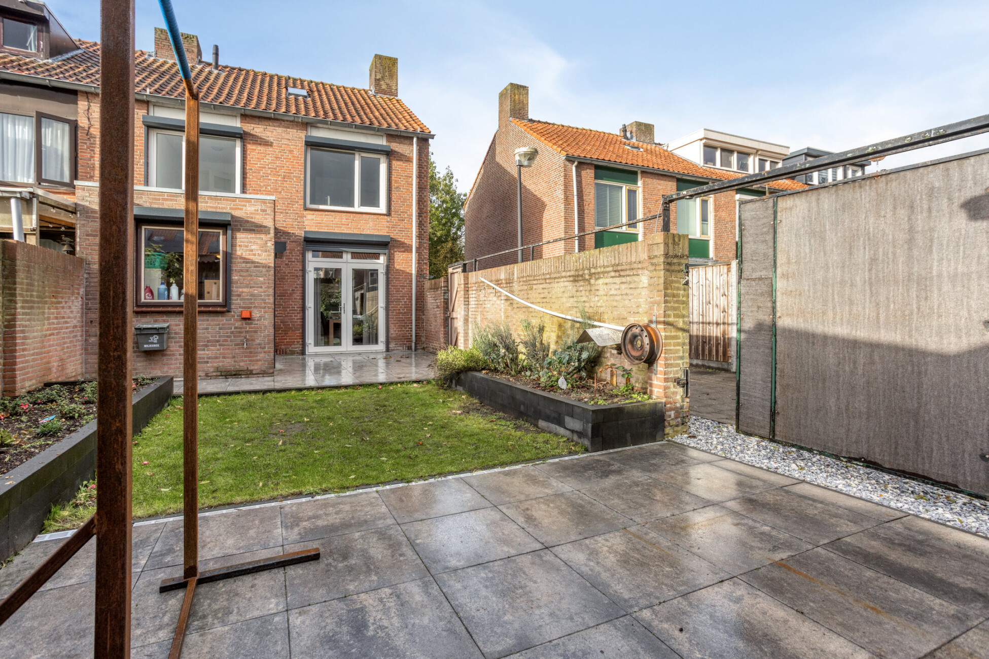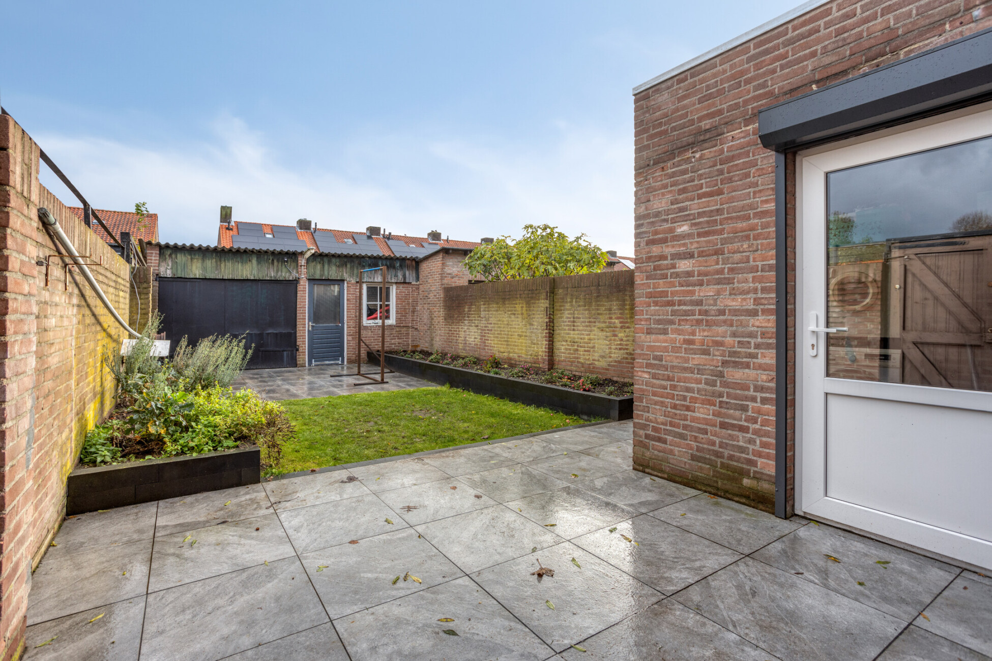 De achtertuin is in 2020 opnieuw aangelegd en biedt een fijne combinatie van natuursteen tegels, gras en groene borders. Dankzij de ligging op het zuidwesten geniet je hier optimaal van de middag- en avondzon. Achterin de tuin staat een ruime stenen garage van maar liefst 30 m², ideaal voor opslag of een werkplaats. De tuin is bovendien bereikbaar via een achterom, de woonkamer én de bijkeuken.