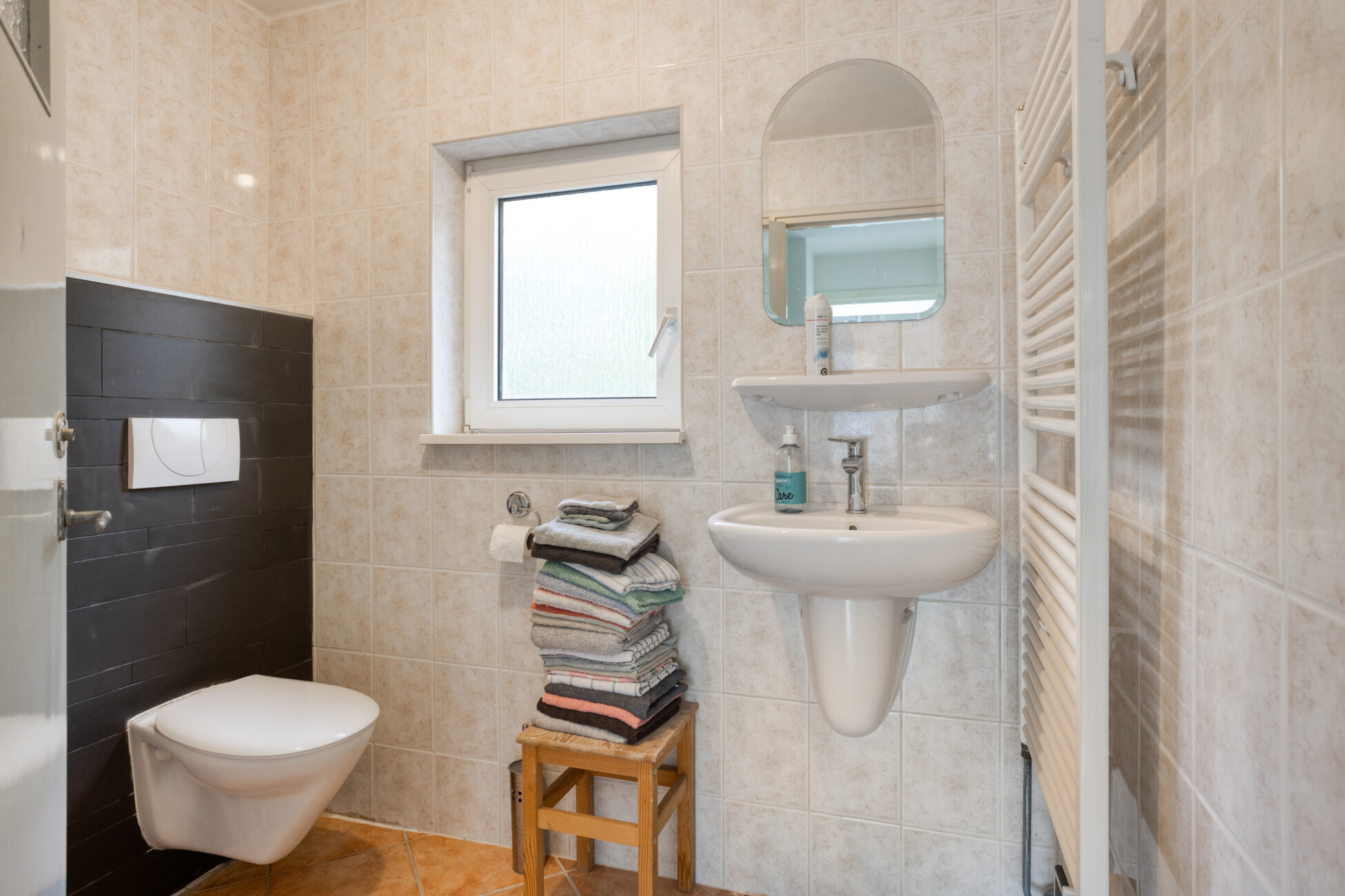 Op de eerste verdieping bevinden zich drie ruime slaapkamers, allen voorzien van laminaatvloer, kunststof kozijnen met dubbel glas, rolluiken en handige inbouwkasten. De badkamer is functioneel en netjes, met een tweede toilet, wastafel en douche.