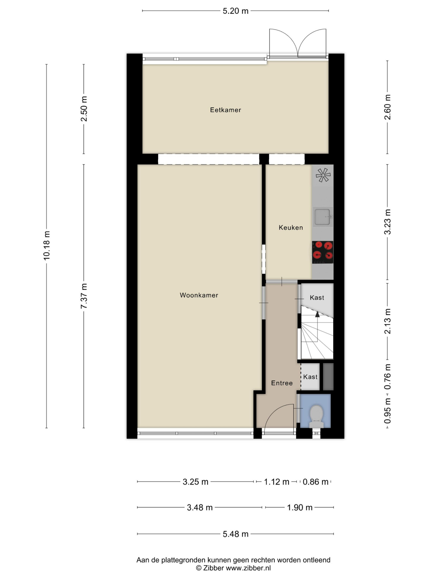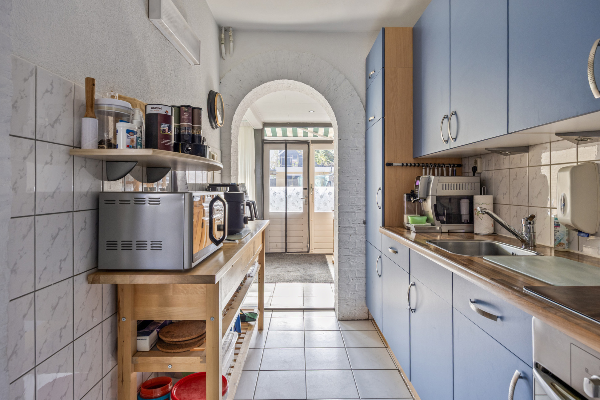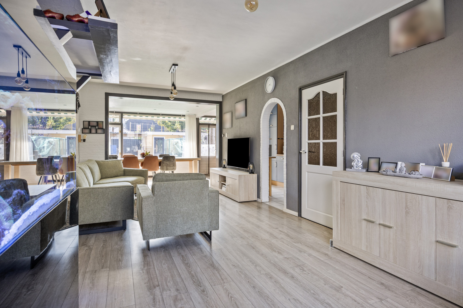 Je betreedt de woning via de entree met toilet en meterkast, waarna je toegang hebt tot de keuken en de lichte woon-/eetkamer. De woonkamer aan de voorzijde biedt een prettige zithoek, terwijl de eetkamer aan de achterzijde uitkijkt op de ruime tuin. Grote raampartijen zorgen voor veel natuurlijk lichtinval en een ruimtelijk gevoel. De airco aan de achterzijde biedt extra comfort in de zomer. De keuken, bereikbaar vanuit de entree én woon-/eetkamer, is voorzien van een inductiekookplaat, afzuigkap, oven en koelkast, met daarnaast volop kastruimte.