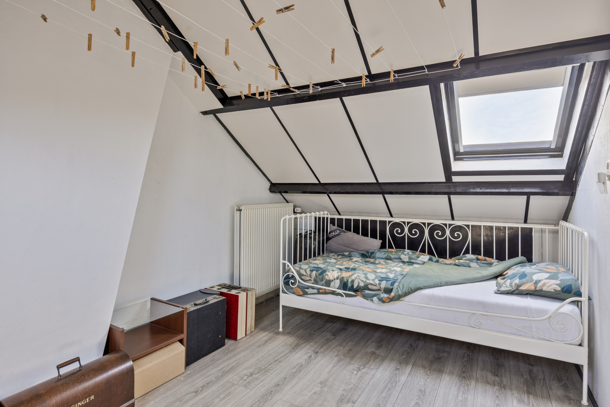 De zolderverdieping is bereikbaar via een vaste trap en biedt een ruime voorzolder met dakraam, de cv-installatie en witgoedaansluiting. Daarnaast vind je hier een vierde kamer, ideaal als slaapkamer, werkruimte of hobbykamer.